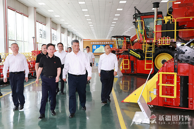 5月25日,自治区党委书记、新疆生产建设兵团党委第一书记、第一政委马兴瑞,自治区党委副书记、自治区主席艾尔肯·吐尼亚孜在沙雅钵施然智能农机有限公司,察看产品展示,了解企业发展情况。石榴云/新疆日报记者崔志坚摄