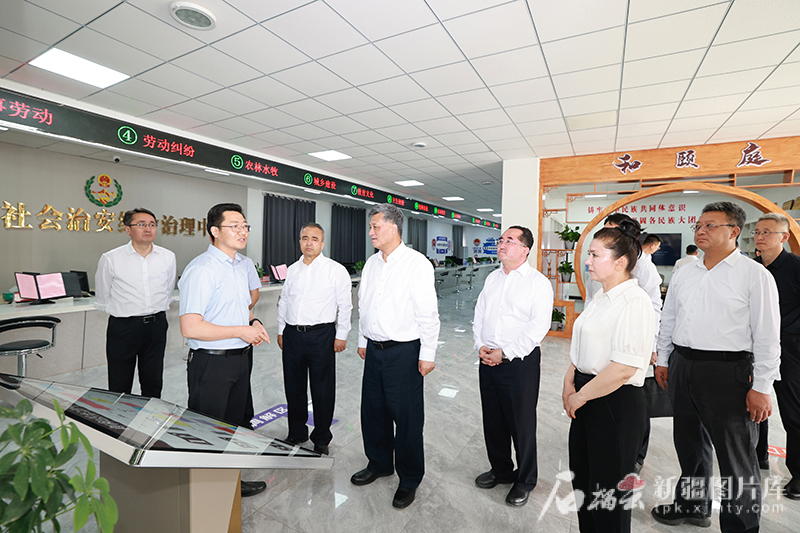 5月25日,自治区党委书记、新疆生产建设兵团党委第一书记、第一政委马兴瑞,自治区党委副书记、自治区主席艾尔肯·吐尼亚孜在新和县社会治安综治中心,了解各项工作开展情况。石榴云/新疆日报记者崔志坚摄