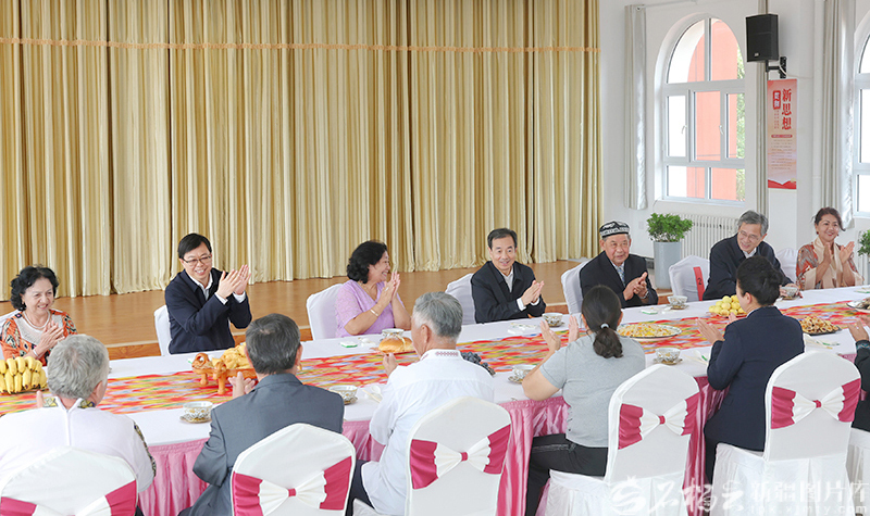 9月10日,自治区党委书记、兵团党委第一书记陈小江来到兵团第九师161团,亲切看望“七一勋章”获得者魏德友。石榴云/新疆日报记者崔志坚摄