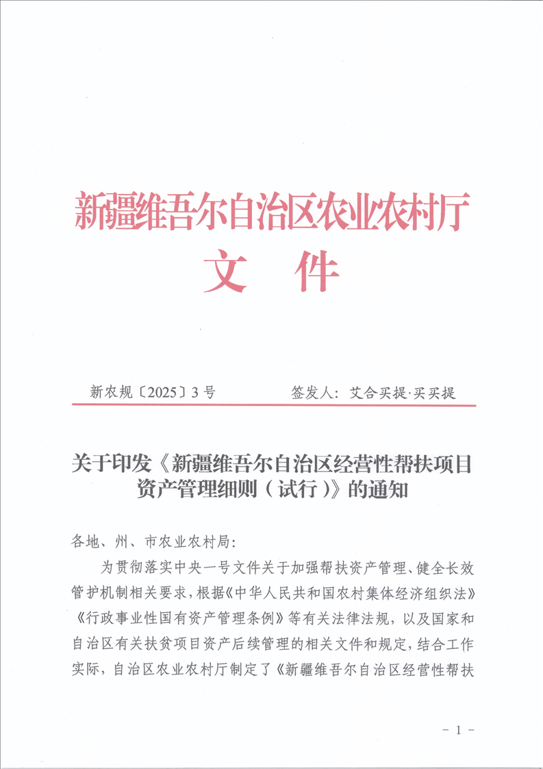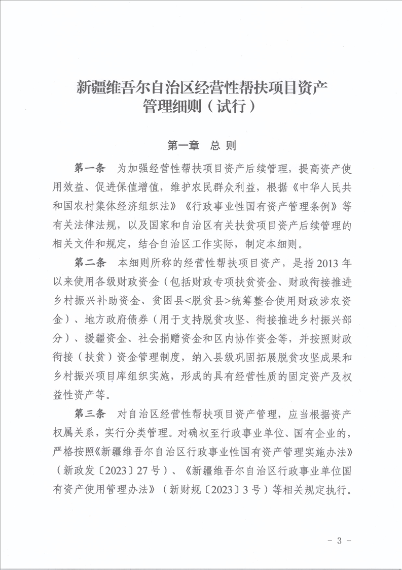 附件:《新疆维吾尔自治区经营性帮扶项目资产管理细则(试行)》