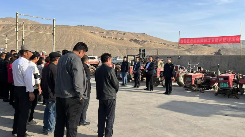 高昌区融媒体中心讯(记者 阿地力·阿力米提)10月23日,高昌区在艾丁湖镇举办农机报废补贴现场会,进一步提高农民群众的知晓率和参与度,加快推进农机报废更新工作。