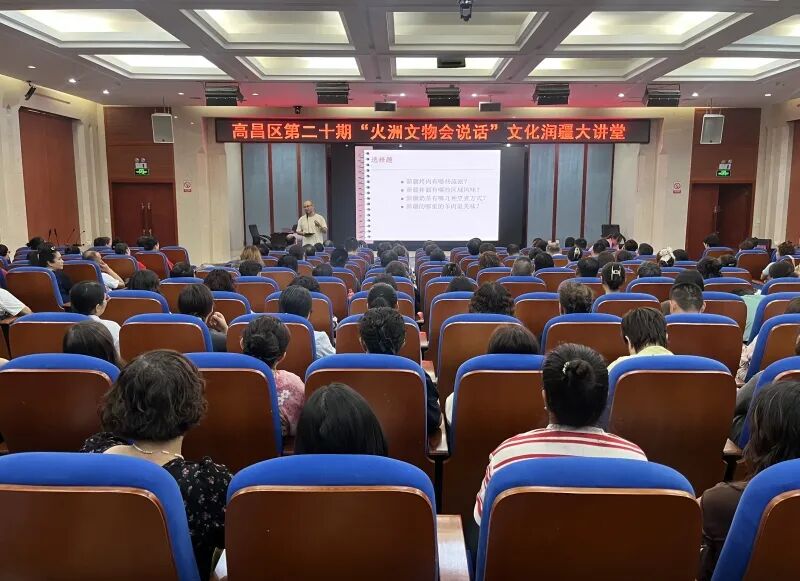 高昌区融媒体中心讯(记者古丽米热·阿力木哈斯业提古丽·哈力克)为深入贯彻落实全国宣传思想文化工作会议精神,积极助力文化润疆工程,8月19日,高昌区第二十期“火洲文物会说话”文化润疆大讲堂在吐鲁番文博院开讲。200余名来自区直单位、乡(镇、场、街道、片区)的基层宣讲员和党员干部到场聆听,共同感受文化润疆的深厚魅力。