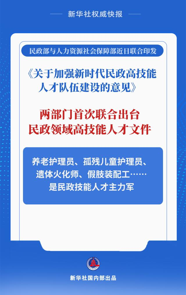 “下一步,我们将和各地一道,抓好意见实施,加快培育打造能够有效支撑民政事业高质量发展的高技能人才队伍。”民政部有关负责人说。