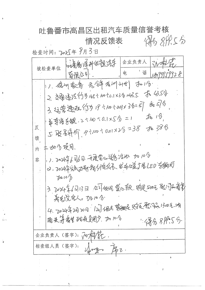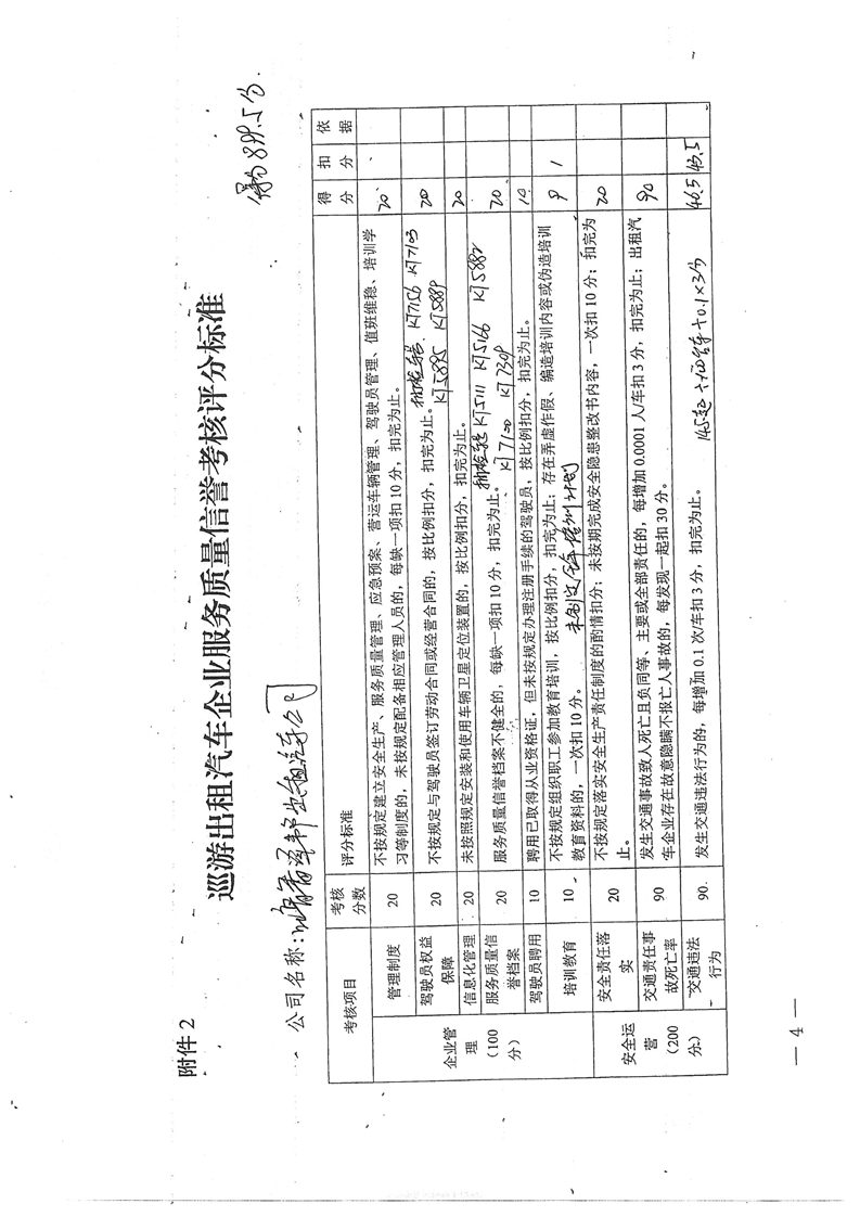 出租汽车服务质量信誉考核信息(泽邦出租汽车有限公司)