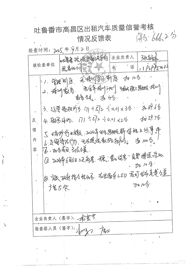 出租汽车服务质量信誉考核信息(旅游出租汽车有限责任公司)