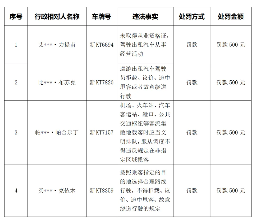 为进一步规范高昌区出租客运市场秩序,提升城市公共交通服务质量,保障乘客合法权益,根据《巡游出租汽车经营服务管理规定》的相关要求,我局对2025年4月23日到6月17日期间查处的违规运行的巡游出租车及驾驶员通告如下: